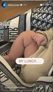 Accompanying the image was the caption “My lunch”, a short but touching message that resonated with her audience. Many interpreted it as a heartfelt expression of the intimate bond she is forming with her child, while also reflecting the joy and devotion she feels as a mother.